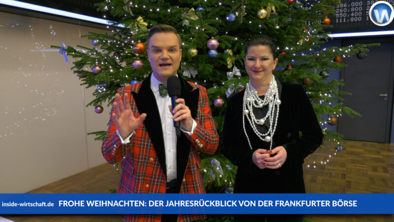 Jessica Schwarzer und Manuel Koch wünschen frohe Weihnachten von der Frankfurter Börse